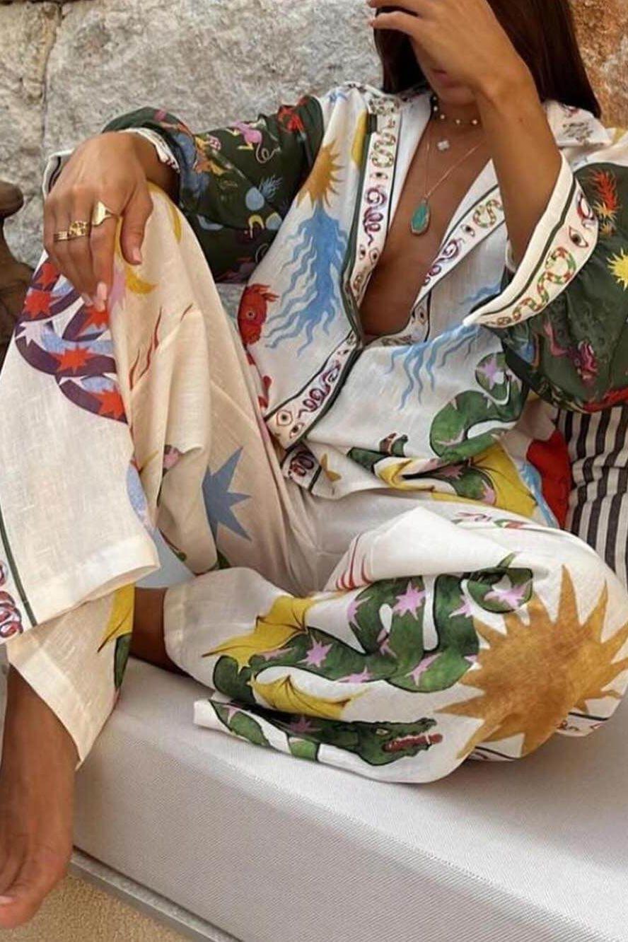 Croială relaxată, dar rafinată – Cămașă fluidă cu nasturi asociată cu pantaloni cu talie înaltă, ajustați
