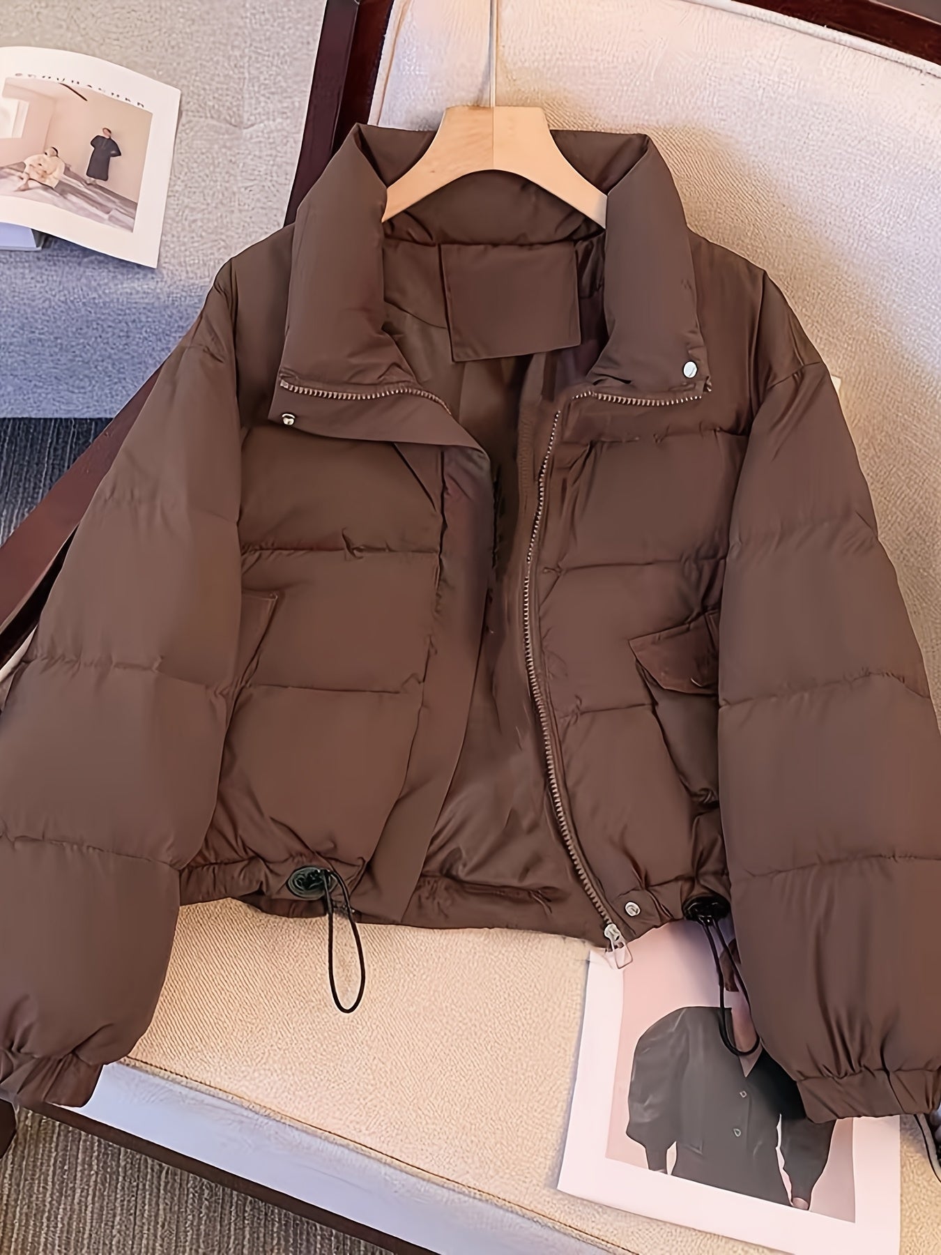 Disponibilă în culori elegante precum beige, alb, negru și argintiu, această jachetă se potrivește în orice garderobă. Asortați-o cu blugi și cizme pentru un look casual de iarnă, sau purtați-o peste o ținută elegantă pentru un aspect chic și modern. O jachetă esențială pentru sezonul rece.