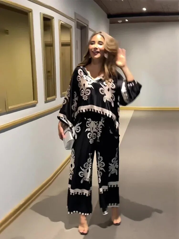 Intră într-o lume în care moda întâlnește libertatea cu Setul de Pantaloni cu Print Irregulat Milani. Inspirat de stilul boem și conceput pentru femeia modernă încrezătoare, acest ansamblu din două piese îmbină imprimeurile artistice cu o croială relaxată. Fie că explorezi un oraș nou, te îndrepți spre o întâlnire casuală sau te bucuri de zile relaxate cu stil—Milani aduce un aer fără efort în garderoba ta.